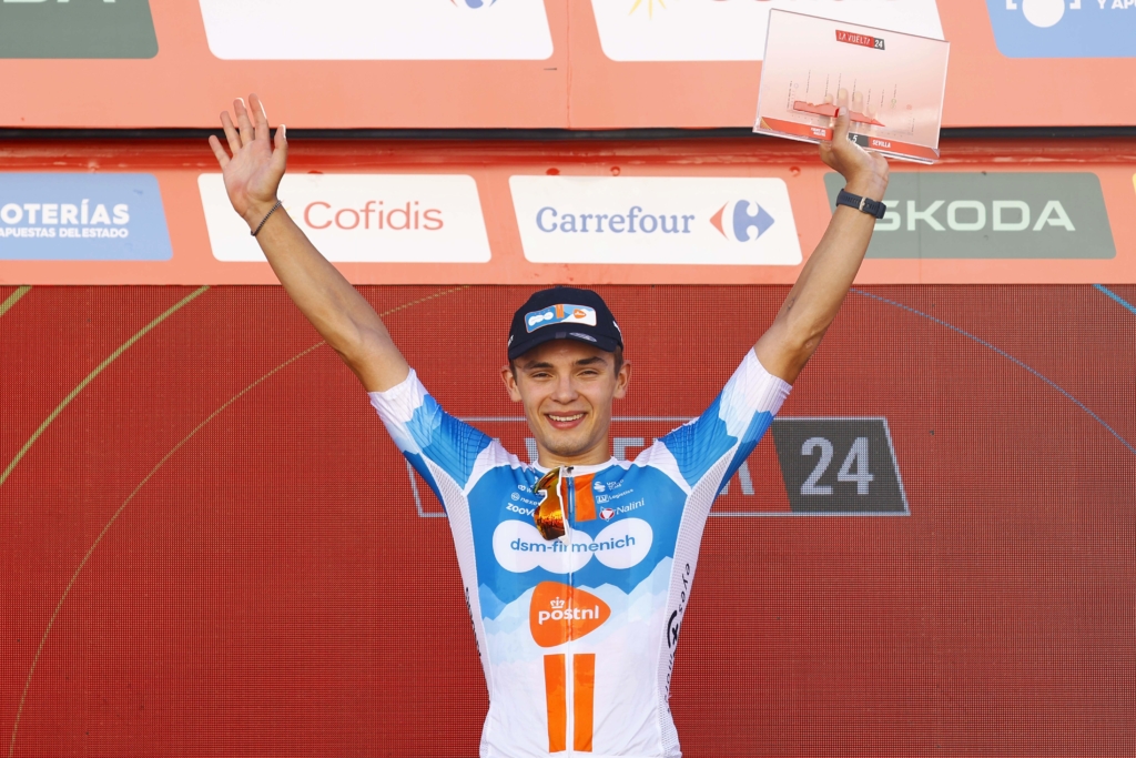 Full of confidence after good showings and teamwork in the previous sprint opportunities where fast finisher Bittner claimed sixth and fifth, Team dsm-firmenich PostNL were motivated to go all-in for the sprint once again. A relatively controlled stage followed with a two rider break allowed to escape from the roll-out without any big fight, before the sprint teams took over in reeling them back in throughout the afternoon. Coming into Sevilla the action was as hot as the temperature, but Team dsm-firmenich PostNL kept their cool, bringing Bittner into a great position in the final kilometre. Opening up a savagely strong sprint effort, Bittner kicked hard and held on to take an epic and well-deserved victory; and his first ever Grand Tour stage success. The win with Bittner also marks a special occasion for Team dsm-firmenich PostNL, who have now taken 15 wins with riders promoted from their Development program in the 2024 campaign alone.