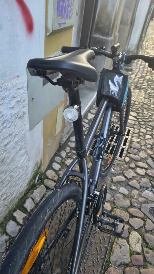 🚲 Giant Escape Disc 3 (Tamanho S) – Conjunto Completo | Excelente Estado Bicicleta híbrida versátil, confortável e eficiente, ideal para cidade, deslocações diárias e percursos mistos. Tudo foi comprado a partir de julho de 2024 e encontra-se em excelente estado funcional e estético. 🔹 Bicicleta * Giant Escape Disc 3 – Tamanho S * Quadro leve em alumínio ALUXX * Posição de condução ereta e confortável * Forqueta em compósito e espigão D-Fuse (absorção de vibrações) * Travões de disco (travagem segura em qualquer clima) * Rodas 700c * Espaço para pneus até 45 mm * Pontos de fixação para porta-bagagens ou guarda-lamas * Porta-bidão incluído 🔹 Acessórios incluídos * Luz traseira West Biking com sensor inteligente de travagem * Farol frontal XOSS recarregável por USB (800 lúmenes) * Capacete BELL (excelente estado) * Óculos básicos de ciclismo * Cadeado grosso de códigos * Bolsa de quadro com dois bolsos grandes + bolso para telemóvel * Mini bomba de mão * Kit completo de reparação de pneus (câmara, cola, remendos e ferramentas) * Kit de manutenção novo * Gancho de parede para bicicleta (novo) 💰 Preço do conjunto completo: 650 € Vende-se apenas o pack completo. 📌 Conjunto totalmente funcional, comprado em 2024, em excelente estado e pronto a usar, sem necessidade de investimento adicional.