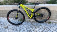 Têm selim telescopico. OS travões são magura mt5 de 4 psitões a frente e trás e os discos ão de 180mm frente e trás.