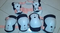 Oferta de capacete e proteções joelhos, cotovelos e mãos.
