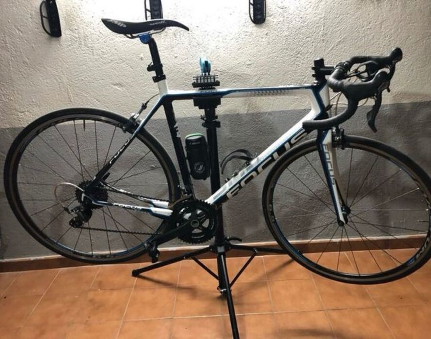 Bicicleta de estrada Focus Cayo Evo equipada com grupo Shimano Ultegra. Apresenta-se em bom estado, com alguns sinais normais de uso.
