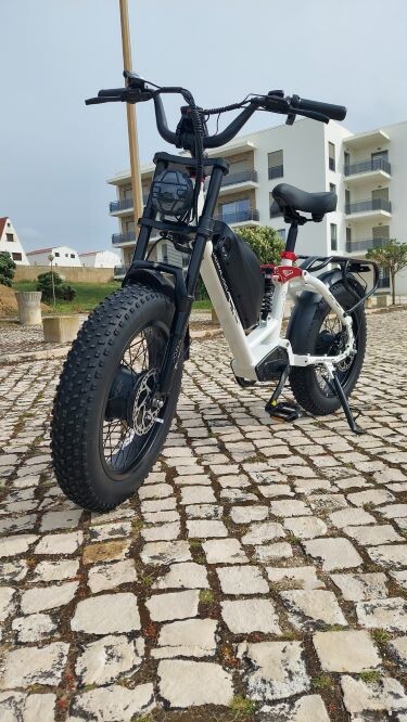 Battery capacity - 48V 20Ah, Range per charge - 70-80km. Dual hub motors - 500W+500W.